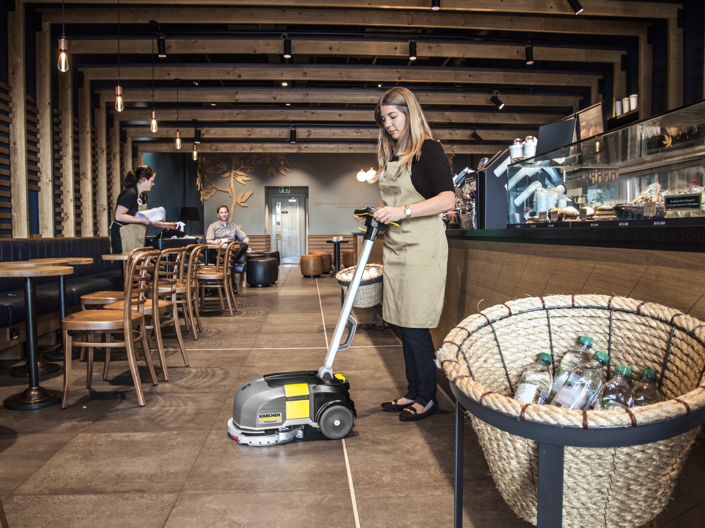 Las zonas estrechas o bloqueadas son el dominio de nuestra barredora-aspiradora con operador a bordo y propulsada por batería KM 85/50 R. Su construcción compacta y su gran maniobrabilidad permiten trabajos de limpieza en cualquier situación donde haya un espacio reducido, pasillos estrechos o muchas esquinas. Este modelo básico también convence en el exterior con un elevado rendimiento de superficie, gracias a su versatilidad y eficiencia. El manejo y el mantenimiento del equipo son muy sencillos. Por ejemplo, el filtro grande de polvo, que permite el trabajo sin levantar polvo, se puede limpiar cómodamente desde el puesto del operador. Además, tanto el acceso a los componentes a través de una cubierta del equipo de apertura amplia, como el cambio del cepillo cilíndrico principal de barrido con alojamiento oscilante, son posibles sin herramientas. El momento adecuado para el cambio se conoce gracias al indicador de desgaste, bien visible desde fuera. No es necesario renivelar el sistema de barrido: los suelos irregulares se barren siempre perfectamente sin dejar restos. El cepillo lateral ajustable evita eficazmente los daños, y su velocidad de giro puede modificarse en caso necesario. El sistema Home-Base integrado permite además llevar otros utensilios de limpieza.